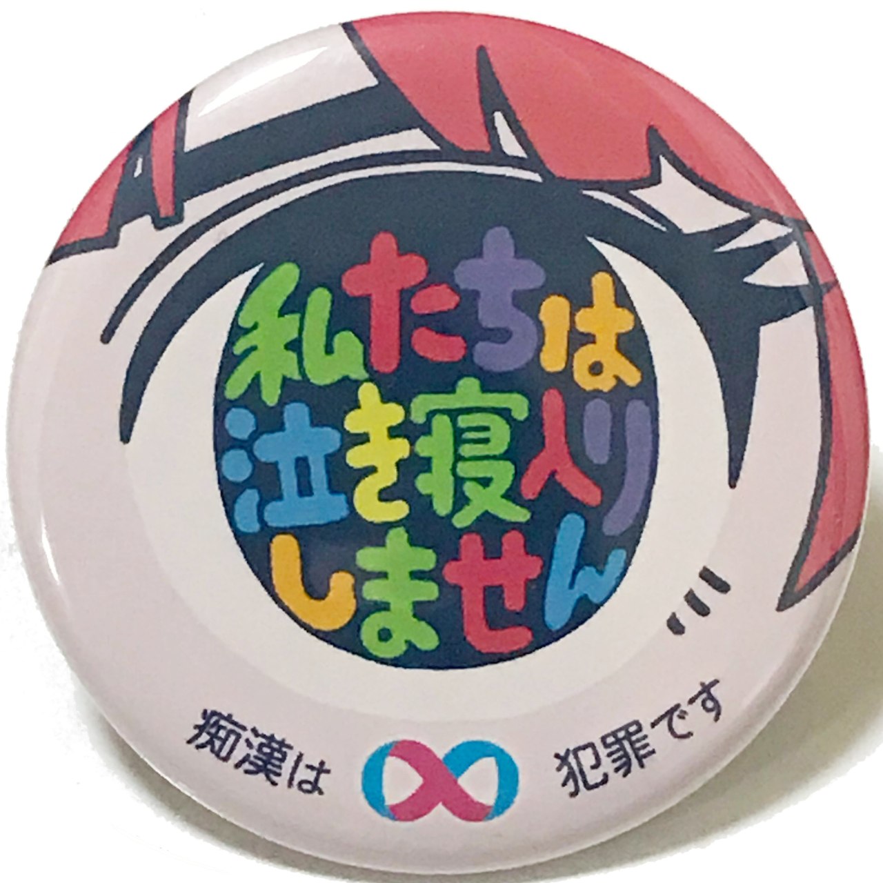 痴漢という犯罪に立ち向かっていく意思を強い眼差しで表現しました。犯罪抑止に繋がる目をモチーフに選び、雑然とした車内でも目につくカラフルな色にしています。女子中高生に親しんでもらえるようポップなデザインとし、痴漢抑止バッジがさらに普及することを狙いました。