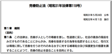 内閣府男女共同参画局サイトより URL: 売春防止法(昭和31年法律第118号) |