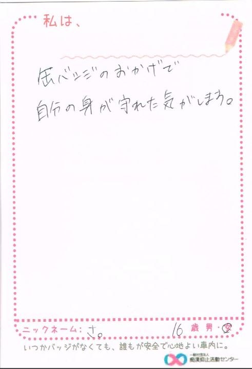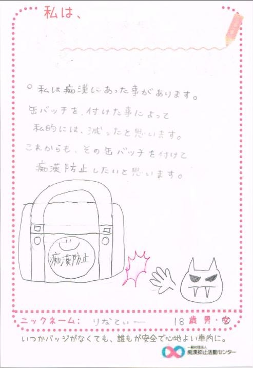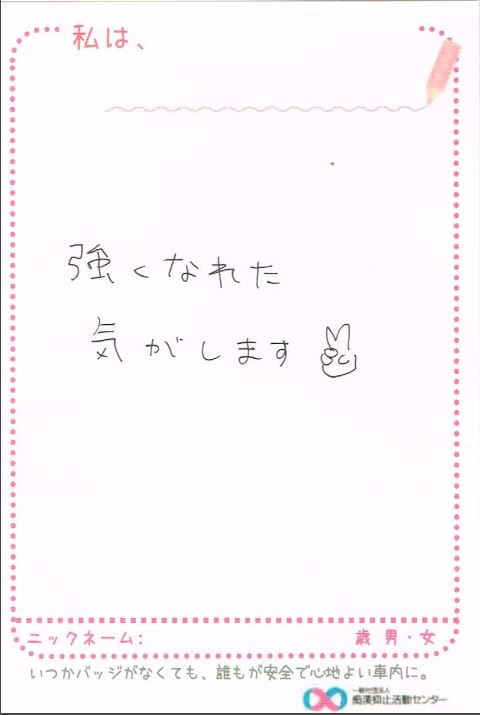 痴漢抑止バッジの購入者からハガキが届いています。掲載許可をいただいている声をご紹介します。