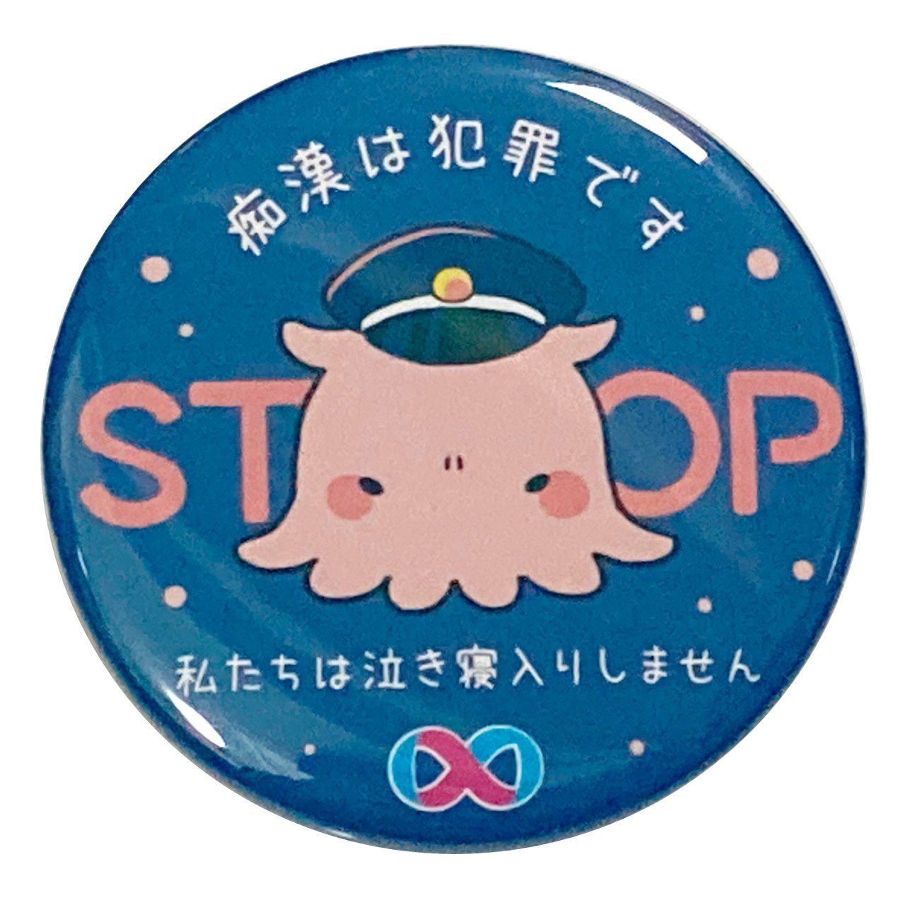 カバンなどにつけやすい、シンプルなデザインを目指しました。ゆるい見た目のキャラクターですが、警官帽と目を吊り上げた顔、STOPの文字で注意喚起ができるようにしました。
