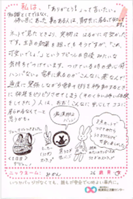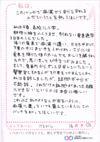 痴漢抑止バッジの購入者からハガキが届いています。掲載許可をいただいている声をご紹介します。