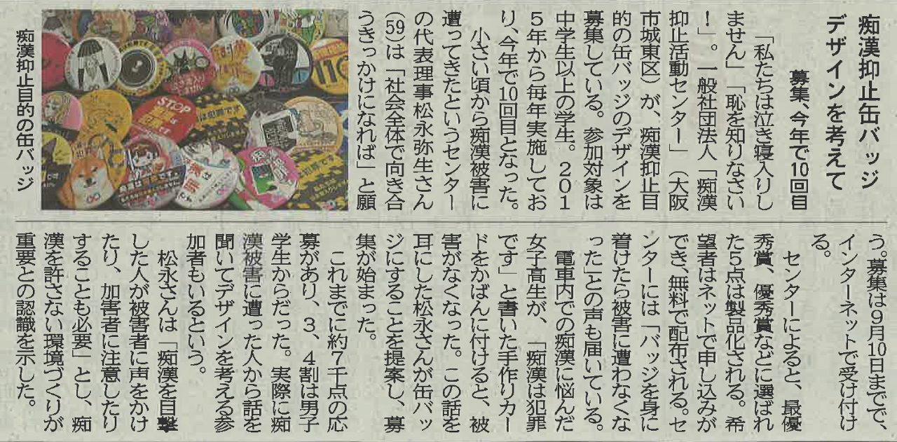 痴漢抑止目的でデザイン募集 缶バッジ、今年で10回目 |