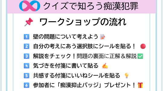 ① ワークショップ「クイズで知ろう 痴漢犯罪」