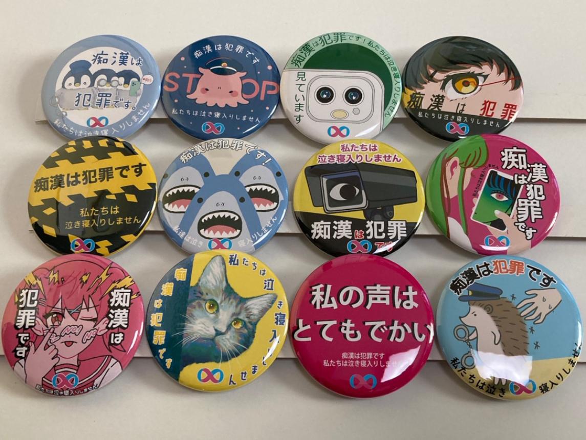 「第8回痴漢抑止バッジデザインコンテスト」の入賞12作品のサンプルバッジができました。