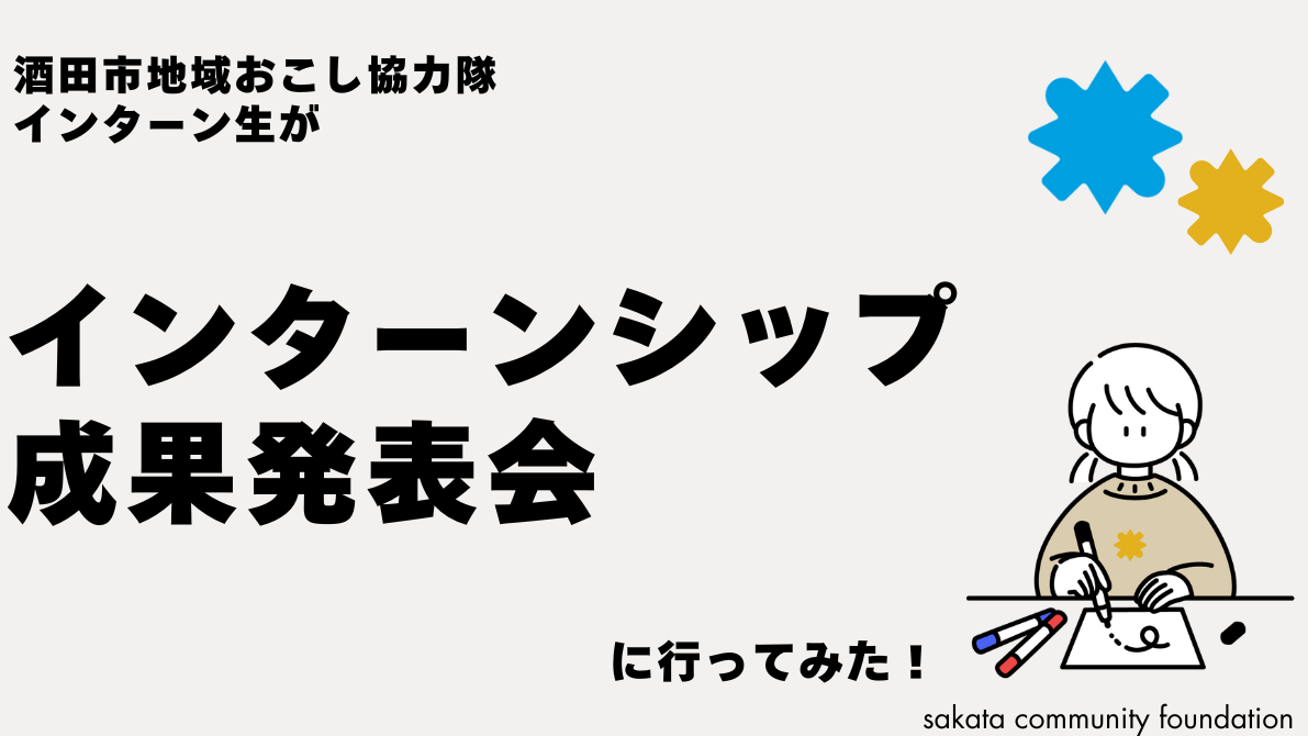 2025-10-14 17:01地域ベンチャー留学 インターンシップ成果発表会今回の投稿では、酒田コミュニティ財団設立準備会でインターンシップを行なっている紺野さんが発表者として登壇した、地域ベンチャー留学インターンシップ成果発表会の様子をお届けします。 筆者は、酒田市の地域おこし協力隊インターンで酒田コミュニティ財団設立準備会に研修に来ている小栗明弥です🌰2025-10-14 17:01地域ベンチャー留学 インターンシップ成果発表会今回の投稿では、酒田コミュニティ財団設立準備会でインターンシップを行なっている紺野さんが発表者として登壇した、地域ベンチャー留学インターンシップ成果発表会の様子をお届けします。 筆者は、酒田市の地域おこし協力隊インターンで酒田コミュニティ財団設立準備会に研修に来ている小栗明弥です🌰