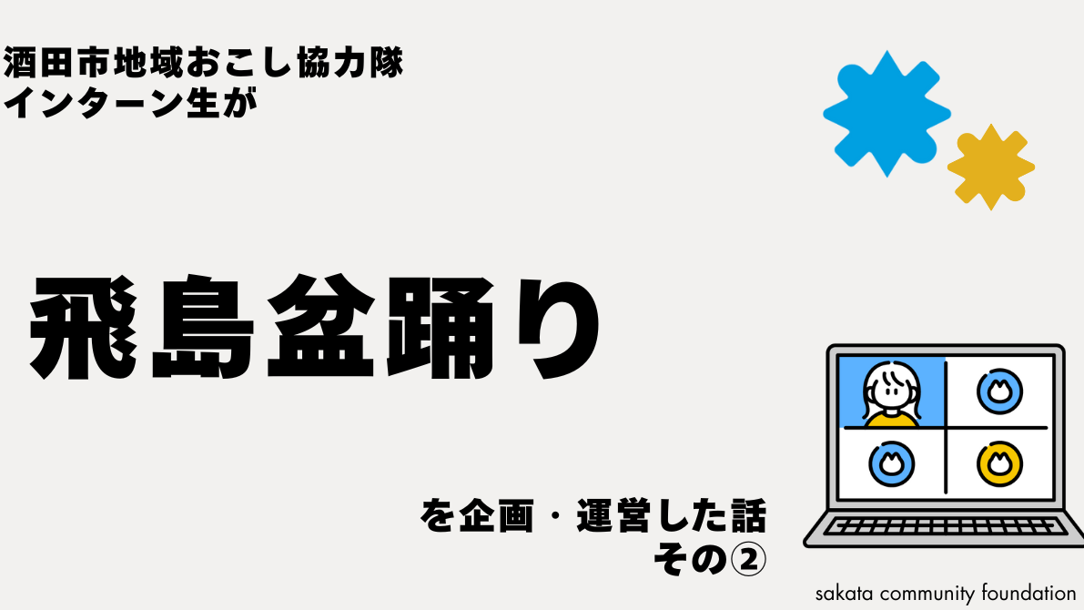 2025-10-17 09:50さかた中町盆踊りは何を目的に実施されたのか【さかた中町盆踊り②】地域おこし協力隊インターンでもあり、飛島盆踊り実行委員でもある笠原が、8月8日(金)に行われた「さかた中町盆踊り」について振り返ります。準備から今後の展望までさかた中町盆踊りについて3回に渡る特集です。 今回は第2弾!ぜひご覧ください!2025-10-17 09:50さかた中町盆踊りは何を目的に実施されたのか【さかた中町盆踊り②】地域おこし協力隊インターンでもあり、飛島盆踊り実行委員でもある笠原が、8月8日(金)に行われた「さかた中町盆踊り」について振り返ります。準備から今後の展望までさかた中町盆踊りについて3回に渡る特集です。 今回は第2弾!ぜひご覧ください!