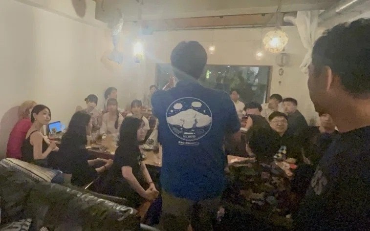 その後はお待ちかねの打ち上げです!大学生だけではなく、大人も参加し、総勢約30名の会になりました。関東在住の大正大学の学生が、酒田に住む大人と話を交わしました。酒田で新たなつながりの場が出来ました。