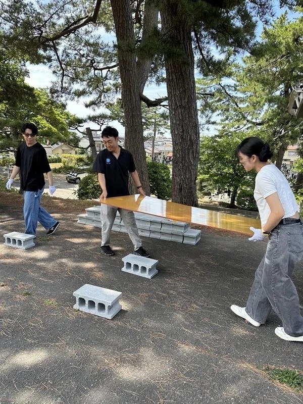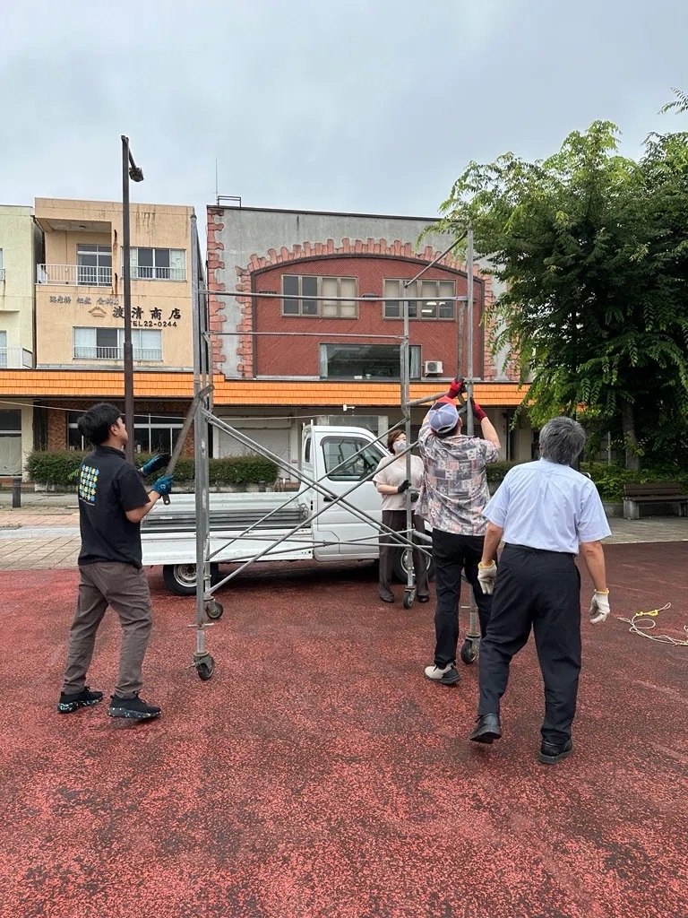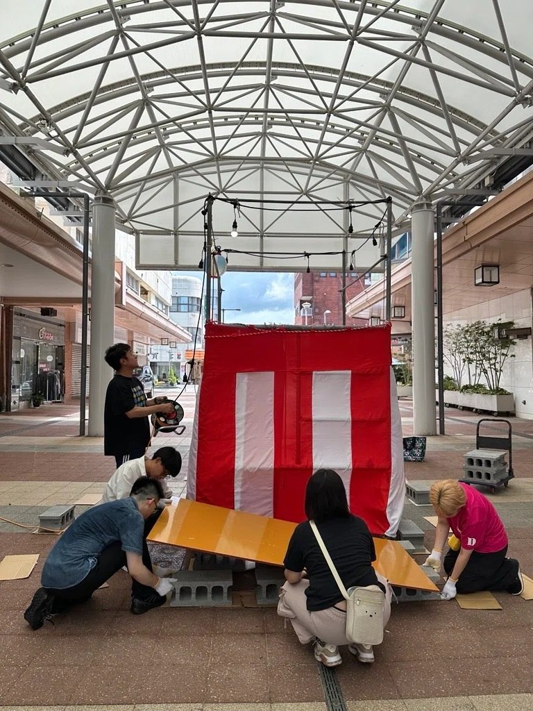 8月1日からいよいよ酒田での準備を進めました。実際の櫓周りを囲むステージをホームセンターに買いに行ったり、実際に置いてみて会場図をイメージしたりと、現地でしかできないことを進めました。