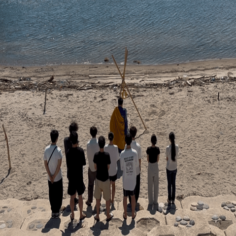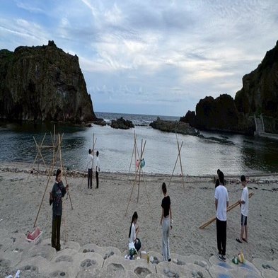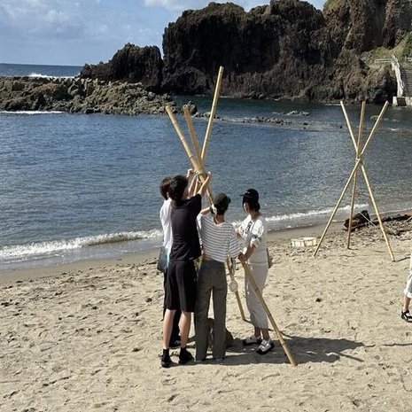 齋藤会長を見送り、飛島を楽しんだ後は、会場の設営リハを実施しました。どれくらいの規模感にするのか、どこを中心とするのかなど、実際に竹を立てながら決めていきました。