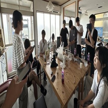 せっかく企画したワークショップをやらないのはもったいないということで、本土で関係者を呼んでワークショップを実施することになりました。高校生を始め、飛島盆踊り運営メンバー、合同会社とびしまの松本さん、酒田コミュニティ財団設立準備会の齋藤会長とお子さん、飛島盆踊りに協力いただき参加予定だった山形大学農学部の皆様に参加していただきました。高校生にとっても私たち運営メンバーにとっても今までの準備を形にできる機会となりました。