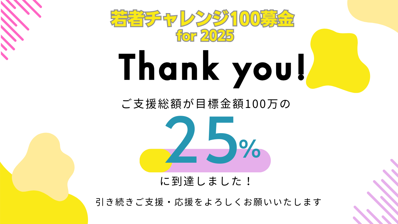 クラウドファンディング【#若者チャレンジ100募金 for 2025】開始1週間で25%突破!