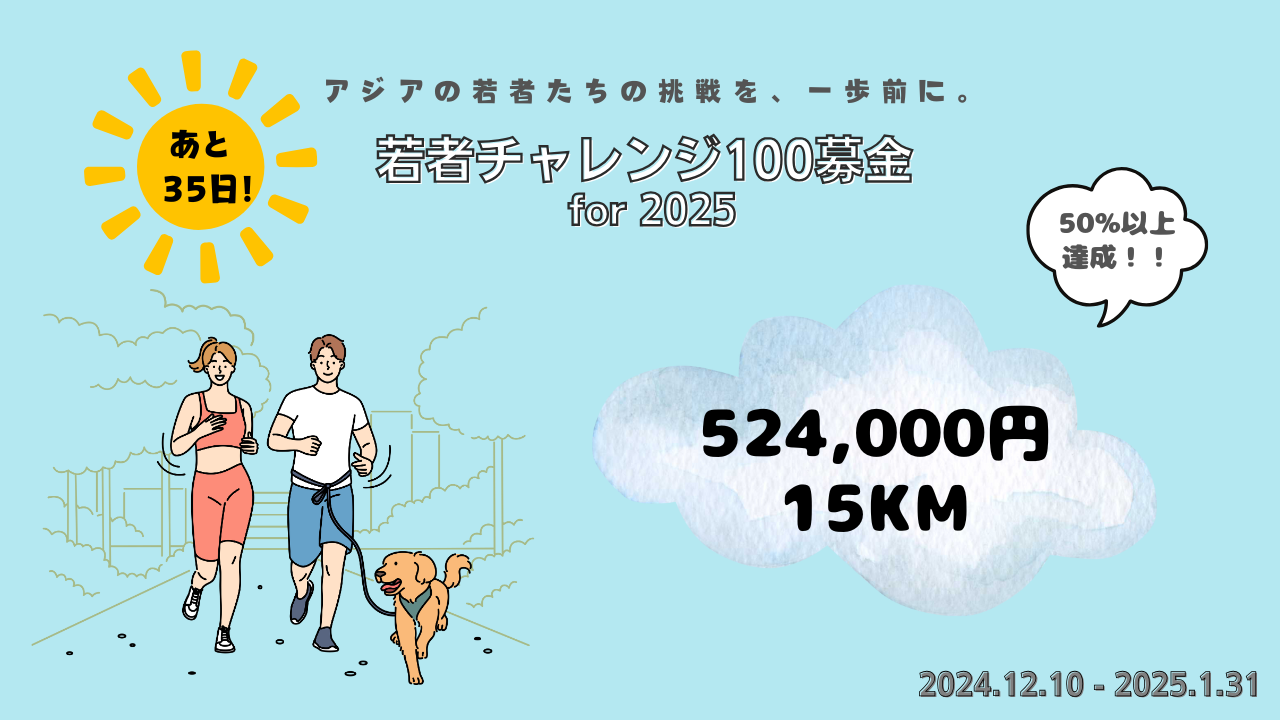 この応援ランは、アジアの若者たちが夢に向かって挑戦する「若者チャレンジ100募金 for 2025」を応援するためのイベントです。