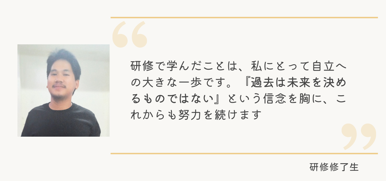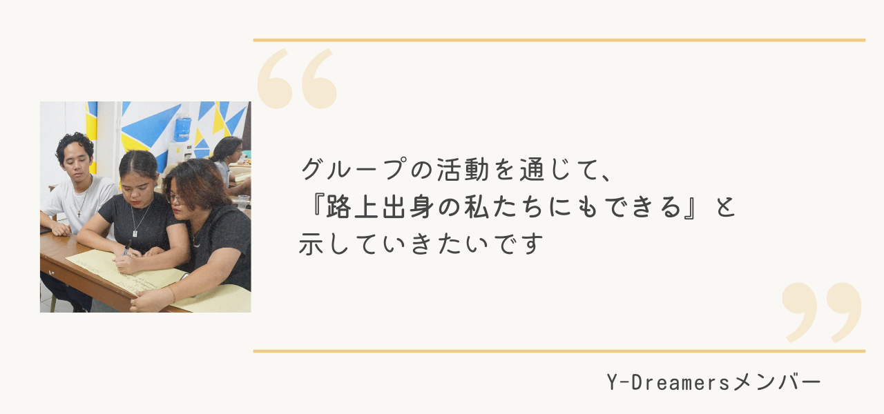 さらに、研修を修了した若者たちが仲間同士で学び合い、支え合うために結成した“Y-Dreamers”が、今後自分たちの手で活動を広げられるよう、法人登録や組織づくり、人材・資金面でのサポートを進めていきます。