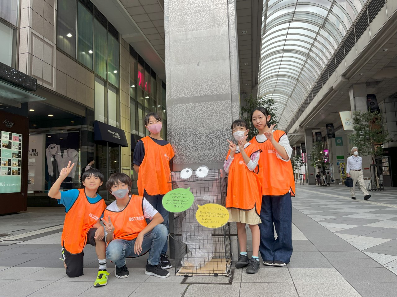 10/19(土)10:00から15:00の間、手作りゴミ箱「エコパッくん」をサンモール一番町商店街に設置しました。