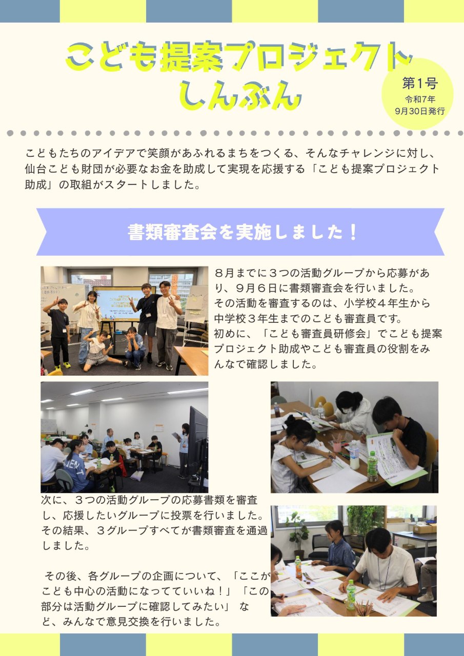 当日の様子やこども審査員の声をまとめた「こども提案プロジェクトしんぶん」も発行しておりますので、ぜひご覧ください。