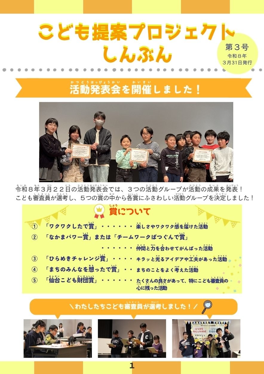 活動発表会の様子は、ぜひ「こども提案プロジェクトしんぶん3号」をご覧ください!