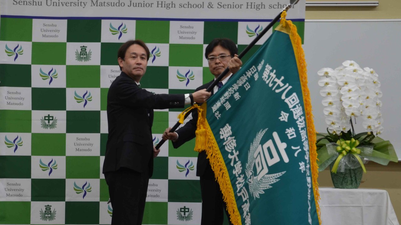 2026-02-13 12:09「選抜旗」授与式の様子本校にて、春の選抜大会出場の証しとなる「選抜旗」の授与式を執り行いました。 毎日新聞千葉支局の竹内良和支局長より、五味光校長へ選抜旗が手渡されました。2026-02-13 12:09「選抜旗」授与式の様子本校にて、春の選抜大会出場の証しとなる「選抜旗」の授与式を執り行いました。 毎日新聞千葉支局の竹内良和支局長より、五味光校長へ選抜旗が手渡されました。
