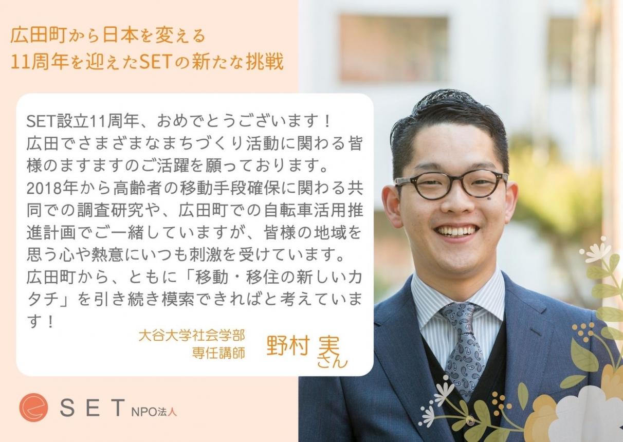 大谷大学社会学部専任講師 野村実さんより応援メッセージをいただきました!ありがとうございます!