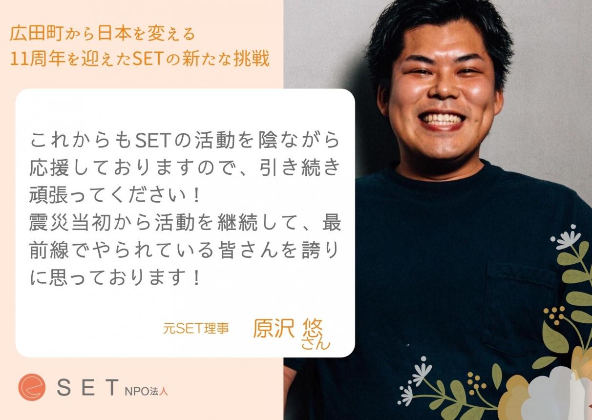 元SET理事 原沢悠さんから応援メッセージをいただきました! 応援ありがとうございます!