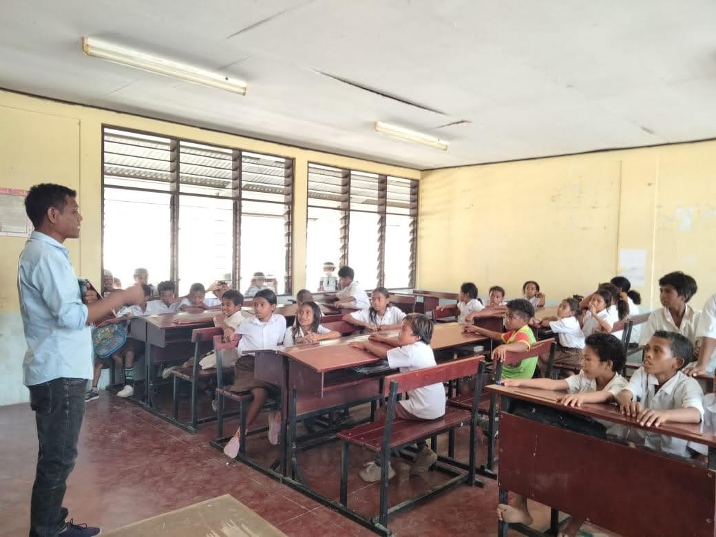 ディリ県メティナロ郡は、保健教育の活動地の一つです。海と山に囲まれた地域に6千人ほどが暮らしています。首都にありながら中心部から最も距離が離れているため、インフラの整備が進んでいない地域も多いのが実情です。未舗装の道を通らないとたどり着けない小学校もあります。携帯電話の電波が通じないため、実際に訪問しないと連絡ができないこともあります。この地域には6つの公立小学校があり、約1,600人の子どもたちが学んでいます。