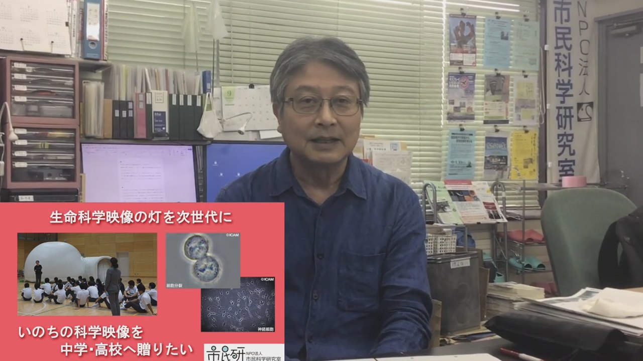 生きて動いているいのちの姿は、どんなに立派な写真や図解や標本やCGでも伝えられません。それができるのは、精緻な技術を用いて撮影された映像だけです。NPO法人市民科学研究室は17年前に、世界最高レベルの生命科学映像を制作してきたアイカム社と出会い、その作品の素晴らしさに感銘し、以来、共同で上映会などを数多く実施してきました。そうした映像体験が、若者たちがいのちを大切に育み、生命科学の研究や映像制作に興味を持つことにもつながる、と確信しているからです。ただ、その体験の機会を多くの若い人に提供することはできないままでした。そこで、予算も限られ購入も難しいだろう中学校や高校に、アイカムの科学映像作品セット (DVDブック19本、約50万円)を寄贈しようと考えました。まずは、全国20校をめどに1,000万円を目標にご支援をお願いします。