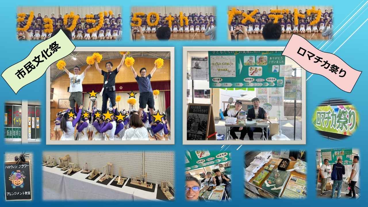 2024-10-31 14:15市民文化祭&ロマチカ祭り 寄付ブースを設置しました!10/27(日)少路小学校体育館にて市民文化祭が開催されました。 50周年のお祝いや新しいビッグランドをイメージした作品など舞台や展示、外ではグルメストリートも 楽しめる盛りだくさんなイベントとなりました。 同日、ロマンチック街道にて開催されたロマチカ祭りに寄付ブースを設置しました。 ご寄付の御礼や遊具選定の進捗状況などをお知らせしております。 豊中報道TNNさんにも取材して頂きました!詳細は下のリンクよりご覧ください。 https://toyo-2.jp/archives/post-175960.html/22024-10-31 14:15市民文化祭&ロマチカ祭り 寄付ブースを設置しました!10/27(日)少路小学校体育館にて市民文化祭が開催されました。 50周年のお祝いや新しいビッグランドをイメージした作品など舞台や展示、外ではグルメストリートも 楽しめる盛りだくさんなイベントとなりました。 同日、ロマンチック街道にて開催されたロマチカ祭りに寄付ブースを設置しました。 ご寄付の御礼や遊具選定の進捗状況などをお知らせしております。 豊中報道TNNさんにも取材して頂きました!詳細は下のリンクよりご覧ください。 https://toyo-2.jp/archives/post-175960.html/2