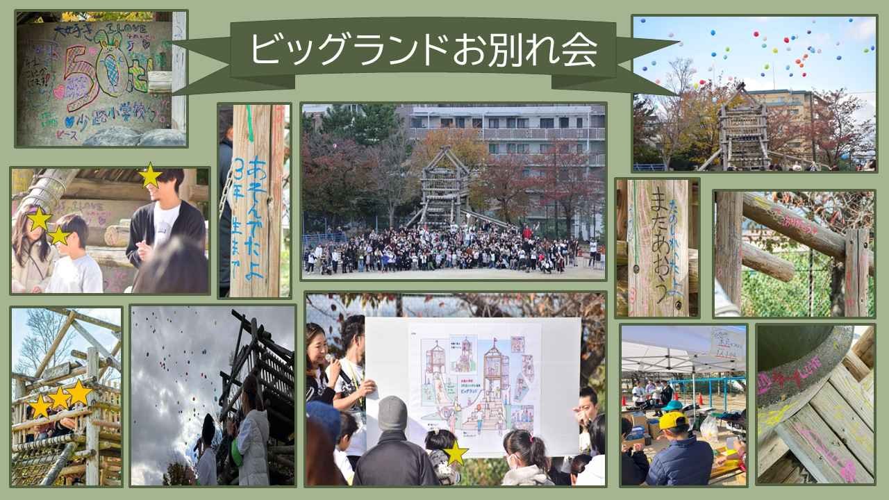2024-11-12 20:56ビッグランドお別れ会が開催されます‼11月23日(土)少路小学校グラウンドにてビッグランドお別れ会が開催されます。25年間、少路っ子達を見守ってくれたビッグランド…。たくさんのありがとう、そしてお疲れ様を皆でビッグランドに伝える最後の機会です。そして、セレモニーの中では新しいビッグランドのデザイン発表も予定しています。どのようなビッグランドになるのかな??子ども達もとても楽しみにしていると思います。ぜひご参加いただきますようよろしくお願いいたします。 寄付の返礼品の一つであるバルーンリリースも行う予定です。申し込み締切が11月15日となっています。また、銘板についても若干空きがございます。新しいビッグランドと一緒に子ども達を見守る位置に銘板碑を建てる予定です。こちらの締切は11月30日となっています。どちらも締切まであと少し、お早めにお申し込み下さい。2024-11-12 20:56ビッグランドお別れ会が開催されます‼11月23日(土)少路小学校グラウンドにてビッグランドお別れ会が開催されます。25年間、少路っ子達を見守ってくれたビッグランド…。たくさんのありがとう、そしてお疲れ様を皆でビッグランドに伝える最後の機会です。そして、セレモニーの中では新しいビッグランドのデザイン発表も予定しています。どのようなビッグランドになるのかな??子ども達もとても楽しみにしていると思います。ぜひご参加いただきますようよろしくお願いいたします。 寄付の返礼品の一つであるバルーンリリースも行う予定です。申し込み締切が11月15日となっています。また、銘板についても若干空きがございます。新しいビッグランドと一緒に子ども達を見守る位置に銘板碑を建てる予定です。こちらの締切は11月30日となっています。どちらも締切まであと少し、お早めにお申し込み下さい。