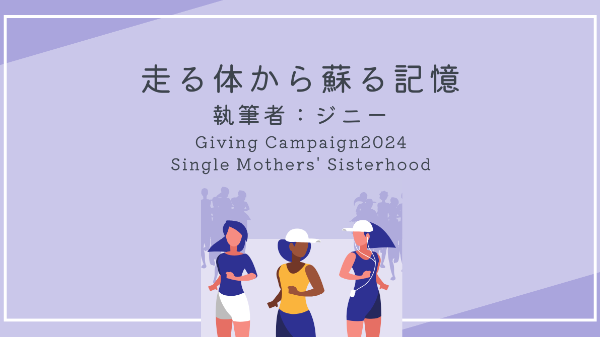 2024-12-18 19:04寄付月間キャンペーン2024・エッセイ紹介1【寄付月間キャンペーン2024・エッセイ紹介1】こんにちは!寄付月間キャンペーン2024キャンペーンスタッフのサチコです。12月は寄付月間。今年もNPO法人シングルマザーズシスターフッドでは、有志のシングルマザーがチームを結成してエッセイを制作・発表し、私たちの活動への応援の寄付を呼びかけるキャンペーンを開催しています。 今年の寄付月間のエッセイのテーマは「走ることについて語るときに私たちの語ること」。同じ「走る」という行為でも、一人ひとりその思いや体験は異なります。エッセイの形で表現することで、執筆者がエンパワーされ、自分自身を再発見していきます。 記念すべきトップバッターを飾るのは、走る喜びを「覚悟を決めた者だけが得られる体験」と描写するかおさんの作品です。2024-12-18 19:04寄付月間キャンペーン2024・エッセイ紹介1【寄付月間キャンペーン2024・エッセイ紹介1】こんにちは!寄付月間キャンペーン2024キャンペーンスタッフのサチコです。12月は寄付月間。今年もNPO法人シングルマザーズシスターフッドでは、有志のシングルマザーがチームを結成してエッセイを制作・発表し、私たちの活動への応援の寄付を呼びかけるキャンペーンを開催しています。 今年の寄付月間のエッセイのテーマは「走ることについて語るときに私たちの語ること」。同じ「走る」という行為でも、一人ひとりその思いや体験は異なります。エッセイの形で表現することで、執筆者がエンパワーされ、自分自身を再発見していきます。 記念すべきトップバッターを飾るのは、走る喜びを「覚悟を決めた者だけが得られる体験」と描写するかおさんの作品です。