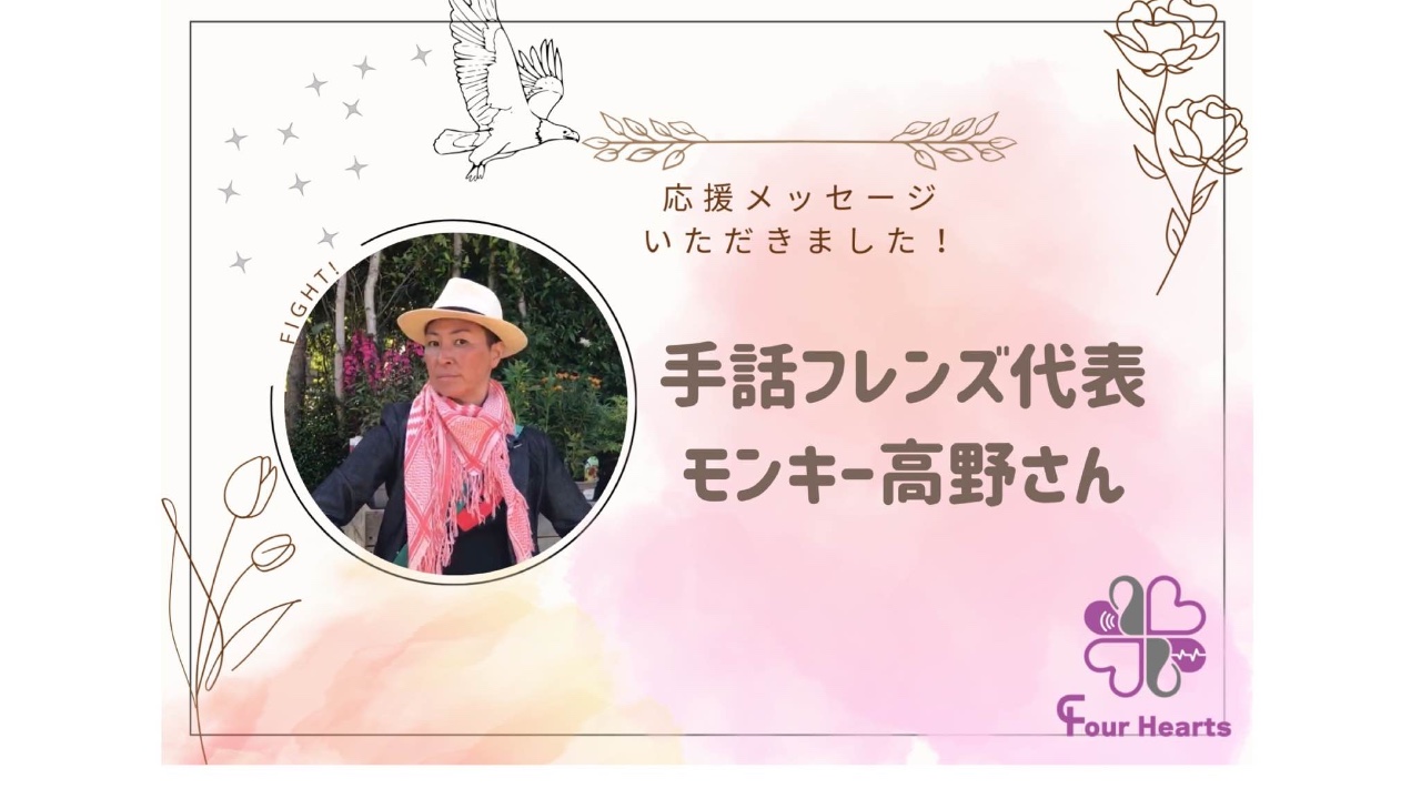 手話フレンズのモンキー高野さんから応援メッセージをいただきました。