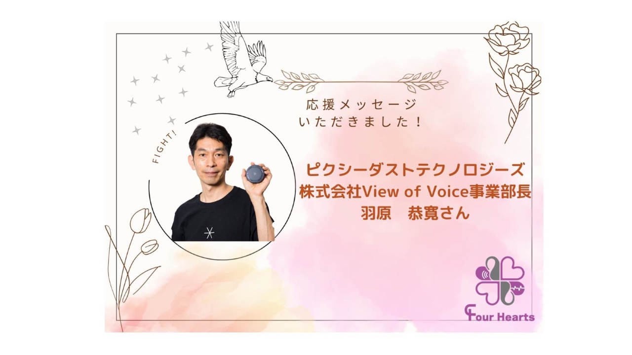 ピクシーダストテクノロジーズ株式会社 View of Voice 事業部長の羽原恭寛さんから応援メッセージをいただきました!