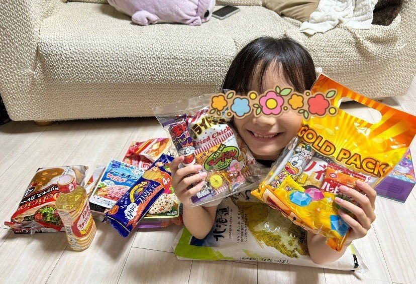 6歳の娘と一緒に開封したのですが、「ママ、見て!お米も入ってるよ」「ママ!○○の好きなパスタも入ってる」「このお菓子も〇〇が貰ってもいいの?児童館のおやつに持っていきたい!」と私以上に喜んでいたように思います。