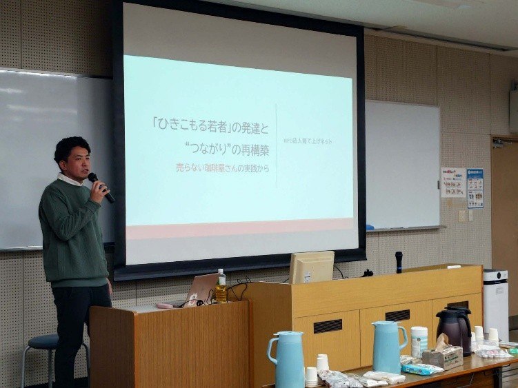 今回は兵庫県立大学環境人間学部の保坂さんからお声がけいただき、保坂さんの講義を受講している学生さんたちの前で売らない珈琲屋さんのことや日本国内における不登校や「ひきこもり」の現状を話しました。