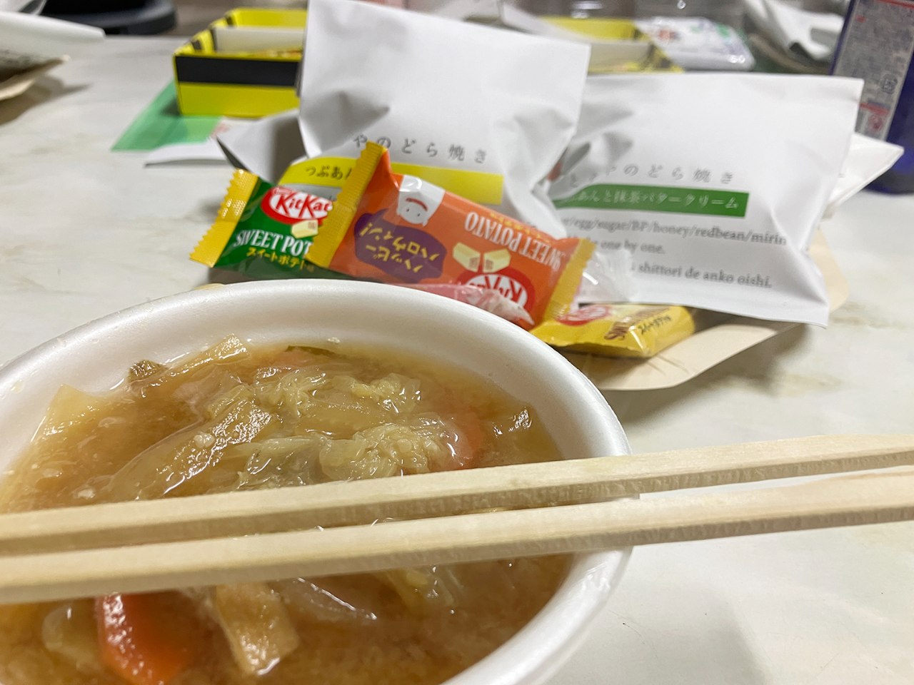 壁を塗るだけでなく、柏崎市内で話題の和菓子カフェ「ToRaYa」さんのどらやきや、高柳町のお母さんたちが手作り弁当を提供してくれる「とくぜん」さんのコロッケやお味噌汁を振る舞わせていただきました。