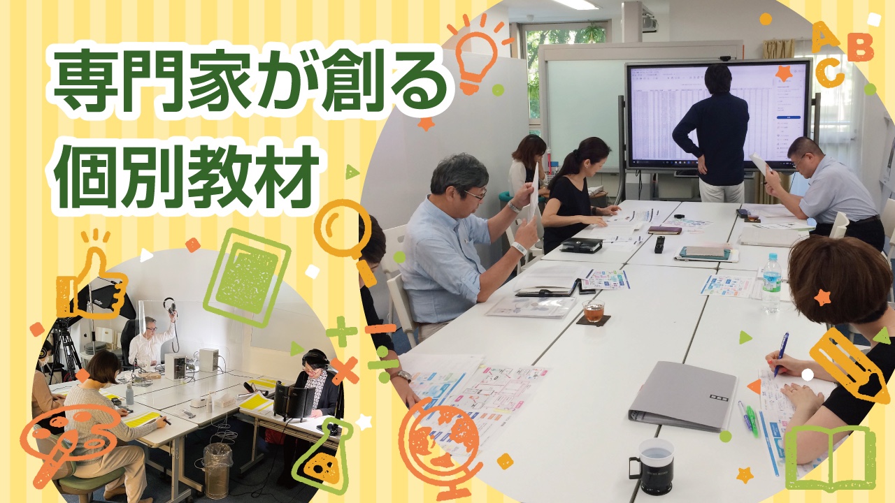 私たちは、特別支援教育に関する教材の開発や研修、調査研究を行っている専門家・研究者のグループです。教育、心理、医療、福祉、情報技術など、さまざまな分野の専門家や学識経験者が集まり、「子ども一人ひとりに合った学び」を実現することを目指して活動しています。