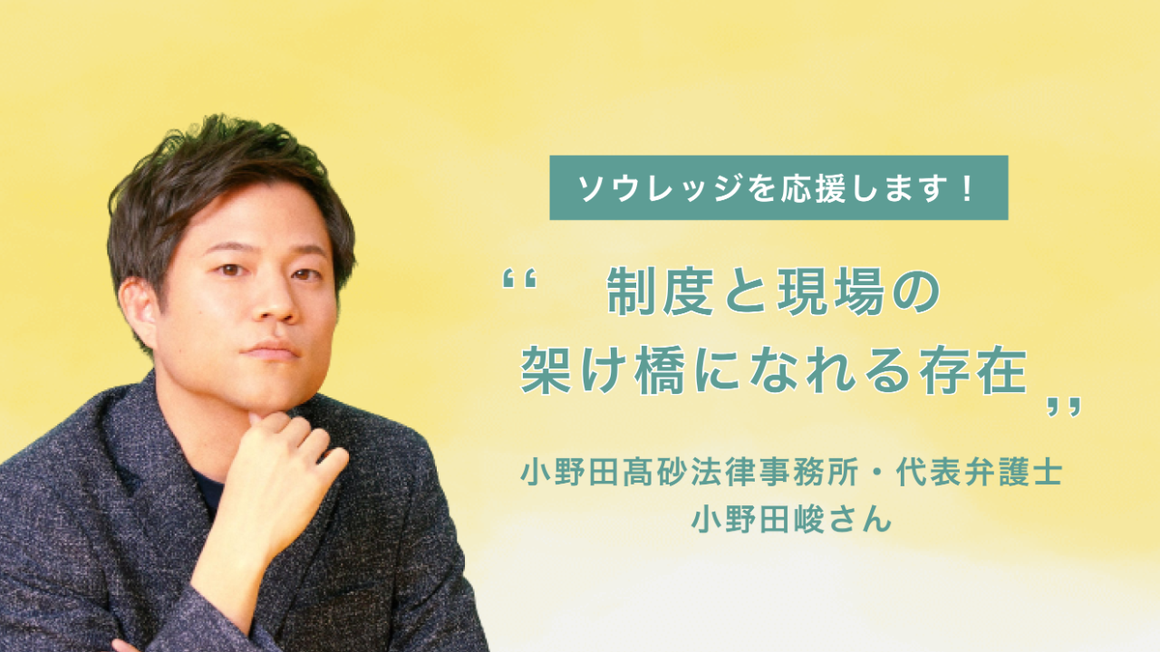 小野田髙砂法律事務所・代表弁護士 小野田峻さんから応援メッセージをいただきました!小野田さんがソウレッジを応援してくださる理由とは?
