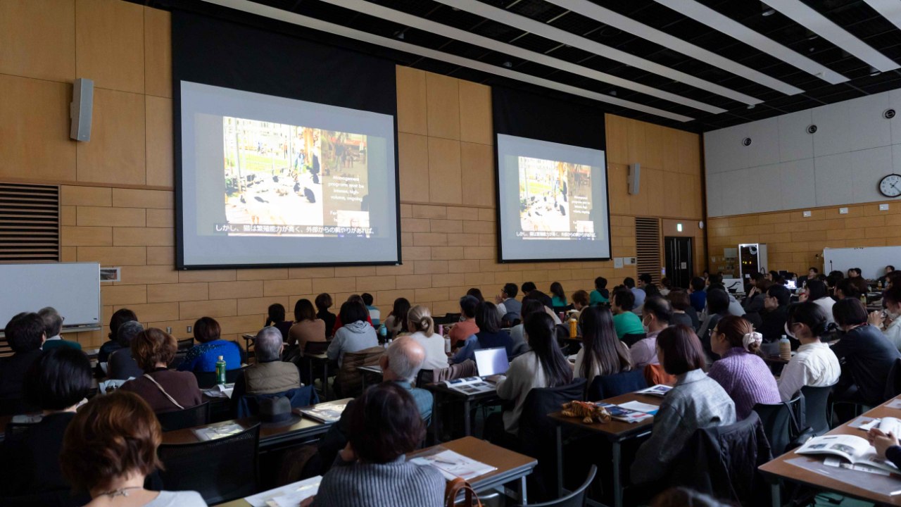 大阪公立大学りんくうキャンパスで開催されたカンファレンスでは、行政獣医師、臨床獣医師、獣医学生、獣医大学関係者、ボランティアさんなど120名の参加頂きました。フロリダ大学のレビー教授の取り組みや学生指導について、コロラド大学のディングマン先生からは、民間動物病院と獣医学生教育との共同事業の成功例についてのご講演を頂きました。その他海外で奮闘する団体の活動に触れ、新たな活動の在り方、日本での課題など改めて考える機会となりました。当会は、このようなカンファレンスを開催することでより日本における犬猫の過剰繁殖問題を解決するためのリーダーシップを取って参ります。これも、皆様のご支援のお陰です。行き場のない命を増やさないための効果的な方法を日本に広めて参ります。応援よろしくお願いいたします。カンファレンス開催のためご支援賜りました方々へ熱くお礼申し上げます。