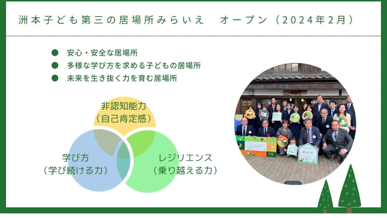 2025-03-20 16:28活動・団体の紹介洲本子ども第三の居場所「みらいえ」を運営するNPO法人兵庫SPO支援センターは2017年4月に淡路島・洲本市で誕生しました。 少子高齢化が進むなかで、市民力を高め、「地域で地域を支えるしくみ」を創り、人々が助け合う共助共生社会の実現を目指しています。 とくに格差の広がりと孤立化は人が幸せに暮らし続ける上で根本的な課題と捉え、人が人を助け合う「つながるしくみ」づくりのために、2018年、洲本市の古民家を改修し、プラットフォーム機能を有する場所として活動してきました。 2020年には、子どもの孤立をなくそうと、蔵を改修し、「子ども図書館きぼう」を開設。コロナが「つながること」の妨げとなり、空調などの環境整備が必要となり、2024年2月に日本財団の助成を受けて、洲本子ども第三の居場所「みらいえ」をオープンしました。 不登校や特性を持つ子どもなど、「生き抜く力」を必要とする子どもたちに自己肯2025-03-20 16:28活動・団体の紹介洲本子ども第三の居場所「みらいえ」を運営するNPO法人兵庫SPO支援センターは2017年4月に淡路島・洲本市で誕生しました。 少子高齢化が進むなかで、市民力を高め、「地域で地域を支えるしくみ」を創り、人々が助け合う共助共生社会の実現を目指しています。 とくに格差の広がりと孤立化は人が幸せに暮らし続ける上で根本的な課題と捉え、人が人を助け合う「つながるしくみ」づくりのために、2018年、洲本市の古民家を改修し、プラットフォーム機能を有する場所として活動してきました。 2020年には、子どもの孤立をなくそうと、蔵を改修し、「子ども図書館きぼう」を開設。コロナが「つながること」の妨げとなり、空調などの環境整備が必要となり、2024年2月に日本財団の助成を受けて、洲本子ども第三の居場所「みらいえ」をオープンしました。 不登校や特性を持つ子どもなど、「生き抜く力」を必要とする子どもたちに自己肯