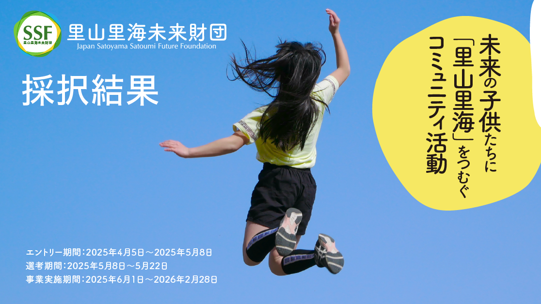 2025-12-20 15:25設立記念助成プログラムにて、3団体を採択いたしました!「里山里海未来財団 設立記念助成プログラム」は、「未来の子供たちに”里山里海”をつむぐコミュニティ活動」というテーマを活動領域とする活動団体に対して、最大300,000円の助成を行う独自の助成プログラムです。2025-12-20 15:25設立記念助成プログラムにて、3団体を採択いたしました!「里山里海未来財団 設立記念助成プログラム」は、「未来の子供たちに”里山里海”をつむぐコミュニティ活動」というテーマを活動領域とする活動団体に対して、最大300,000円の助成を行う独自の助成プログラムです。