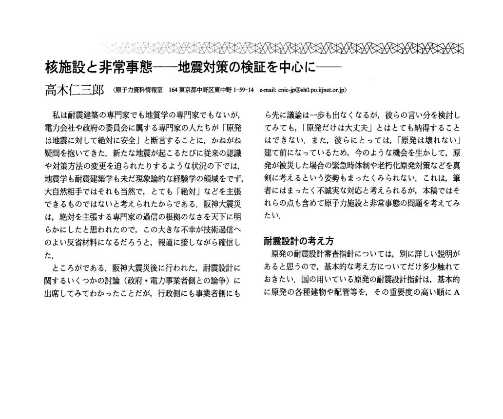 2022-10-08 07:54高木仁三郎の警告:1995年に発表されていた論文「核施設と非常事態」2011年3月の東日本大震災・福島第一原発事故の発生を15年以上前に警告していたとして、事故後にあらためて注目された高木仁三郎の論文を紹介します。岸田政権が原発再稼働・老朽原発の運転延長をなし崩しに進めようとしている今、あらためて読んでいただきたい文章です。2022-10-08 07:54高木仁三郎の警告:1995年に発表されていた論文「核施設と非常事態」2011年3月の東日本大震災・福島第一原発事故の発生を15年以上前に警告していたとして、事故後にあらためて注目された高木仁三郎の論文を紹介します。岸田政権が原発再稼働・老朽原発の運転延長をなし崩しに進めようとしている今、あらためて読んでいただきたい文章です。
