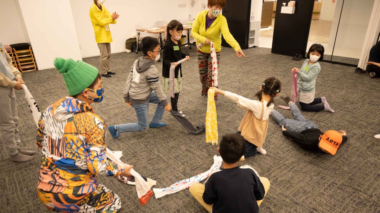 長年、コーディネータ―として関わり大切だ感じたことは「子ども達がやりたいことを自分自身で決めること」。つい大人は多くのプログラムを効率的に周らせようとしてしまいがち。でも、毎年その傾向は薄れ、やりたい事に飛び込んで行く子ども達と一緒に楽しむ大人の姿が見られるようになり嬉しく思う。我が子の楽しそうで真剣で、普段見せない表情や表現力に大人はびっくりしたり思わずほっこりしたり。身体表現を体験するワークショップでは、動き回る子、親から離れられない子もだんだん講師のパフォーマンスに興味を示し始め集中。最後は全員で大きな輪を作り「掌に温かなカップを持っている」と見立ててそっとこぼさないように隣りに手渡すという息を呑む静かな空間を作り上げた。緊張感と相手を思いやりながら優しく手を差しのべる子ども達の様子は感動的だった。「またやりたい」という子どもたちの声に応えてずっと実施できるよう頑張りたいと思う。