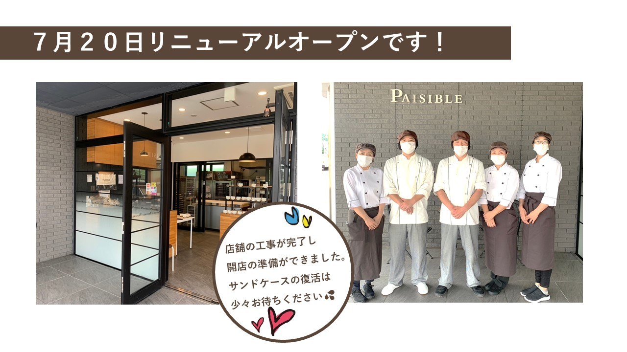 2023-07-19 20:287月20日リニューアルオープンします!温かいご支援に励まされながら復活の準備をしてまいりましたが いよいよリニューアルオープンします。 いただいたご恩は、おいしいパンでお返してまいります! 今後ともどうぞよろしくお願いいたします。 本当にありがとうございました! スタッフ・メンバー一同 みなさまをお待ちしております。2023-07-19 20:287月20日リニューアルオープンします!温かいご支援に励まされながら復活の準備をしてまいりましたが いよいよリニューアルオープンします。 いただいたご恩は、おいしいパンでお返してまいります! 今後ともどうぞよろしくお願いいたします。 本当にありがとうございました! スタッフ・メンバー一同 みなさまをお待ちしております。