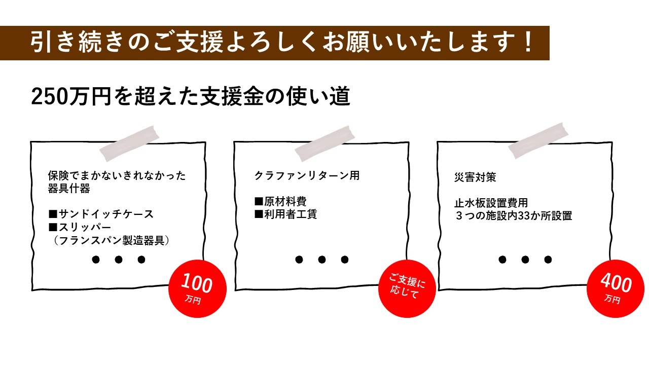 引き続きのご支援よろしくお願いいたします。(250万円を超えた支援の使い道)