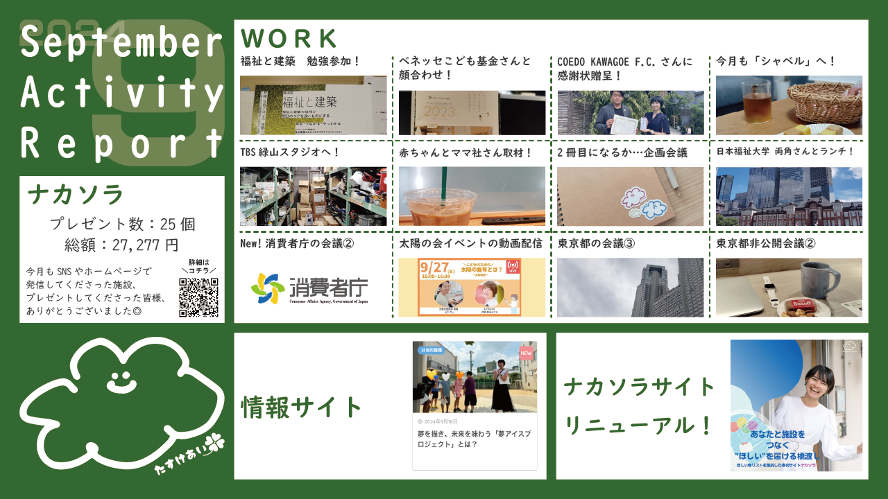 2024-10-16 20:039月の活動報告通信を発行しました📮遅くなりましたが、毎月発行している活動報告を簡単にお知らせいたします。2024-10-16 20:039月の活動報告通信を発行しました📮遅くなりましたが、毎月発行している活動報告を簡単にお知らせいたします。