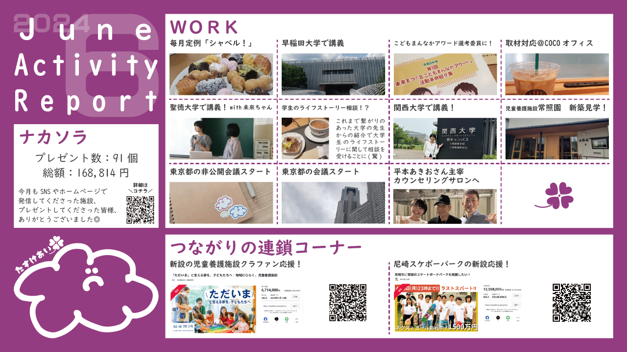 2024-08-04 10:006月の活動報告通信を発行しました📮毎月発行している活動報告をダイジェスト版でお知らせいたします!2024-08-04 10:006月の活動報告通信を発行しました📮毎月発行している活動報告をダイジェスト版でお知らせいたします!