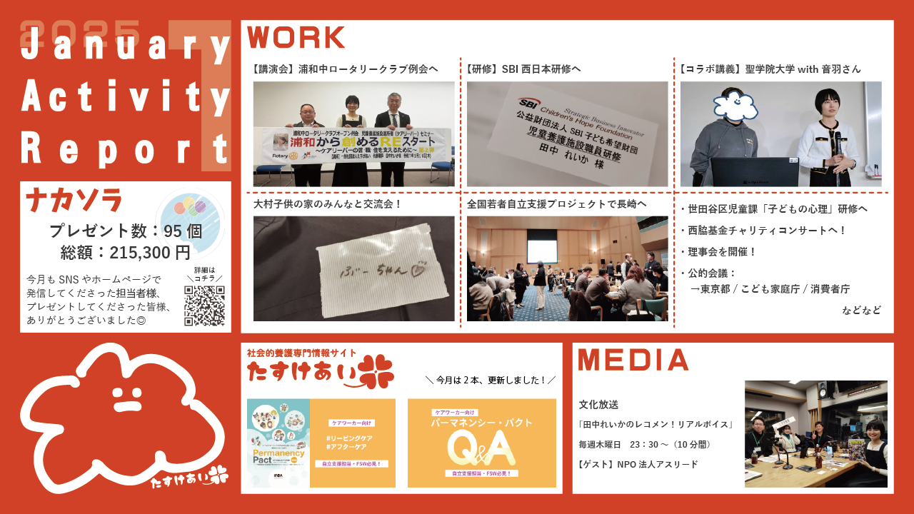 2025-07-03 11:282025年1月の活動報告通信を発行しました📮遅くなりましたが、毎月発行している活動報告を簡単にお知らせいたします。2025-07-03 11:282025年1月の活動報告通信を発行しました📮遅くなりましたが、毎月発行している活動報告を簡単にお知らせいたします。