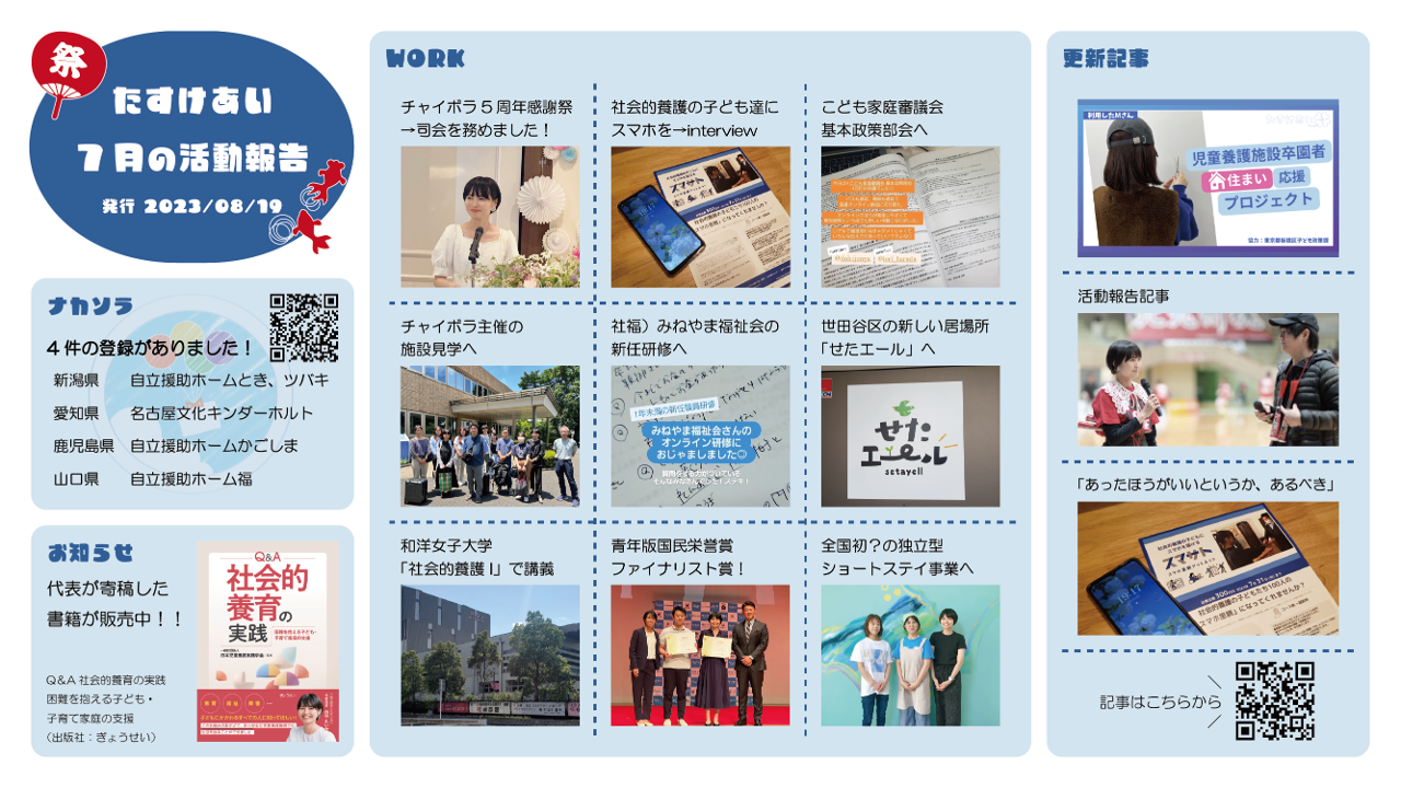 2023-08-25 21:057月の活動報告通信を発行しました📮\いつも応援ありがとうございます!/ ☁マンスリーサポーターのみなさまには毎月の活動報告メールマガジン「ゆる月報」をお送りしております。 ☁代表の著書『児童養護施設という私のおうち(旬報社)』も好評発売中!Amazonレビューをぜひお願いします!→ https://amzn.asia/d/6hLsmaM2023-08-25 21:057月の活動報告通信を発行しました📮\いつも応援ありがとうございます!/ ☁マンスリーサポーターのみなさまには毎月の活動報告メールマガジン「ゆる月報」をお送りしております。 ☁代表の著書『児童養護施設という私のおうち(旬報社)』も好評発売中!Amazonレビューをぜひお願いします!→ https://amzn.asia/d/6hLsmaM