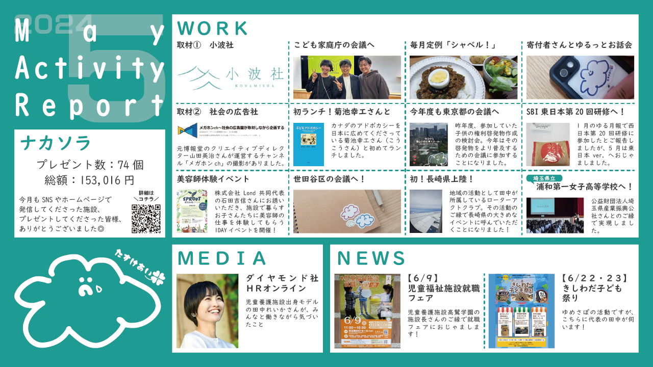 2024-06-10 17:125月の活動報告通信を発行しました📮毎月発行している活動報告をダイジェスト版でお知らせいたします!2024-06-10 17:125月の活動報告通信を発行しました📮毎月発行している活動報告をダイジェスト版でお知らせいたします!