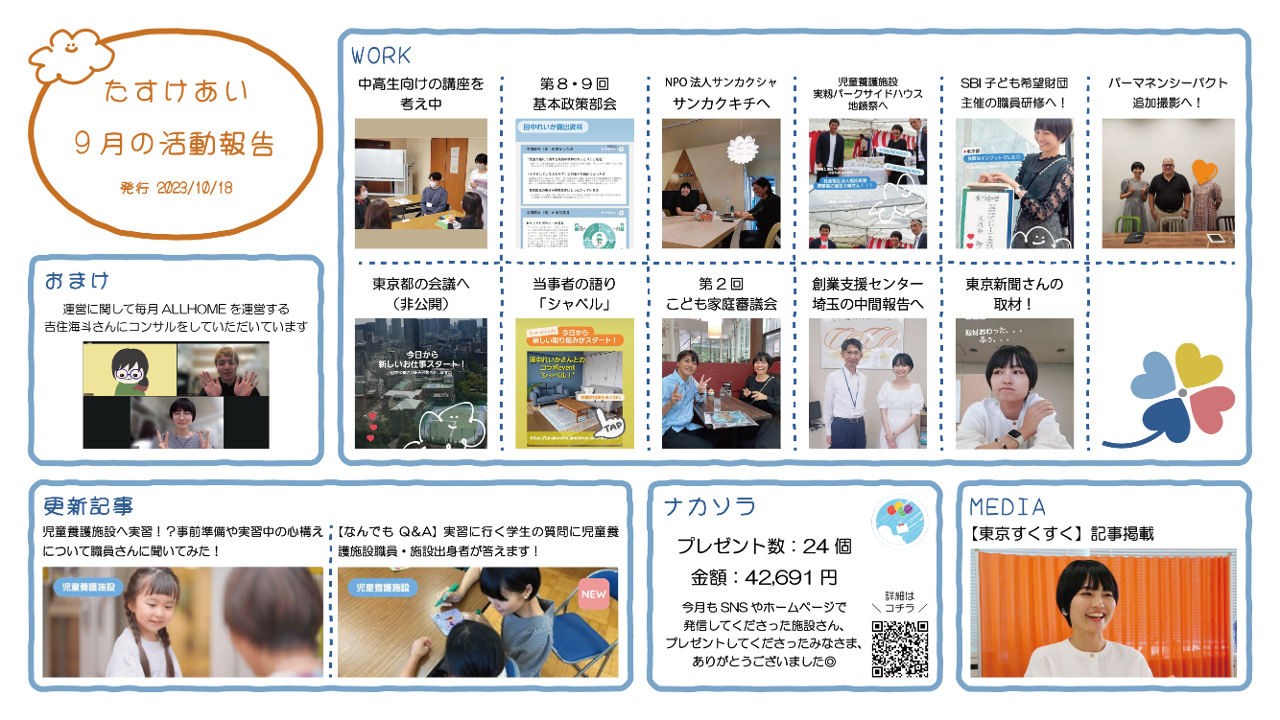 9月の活動報告通信を発行しました📮
