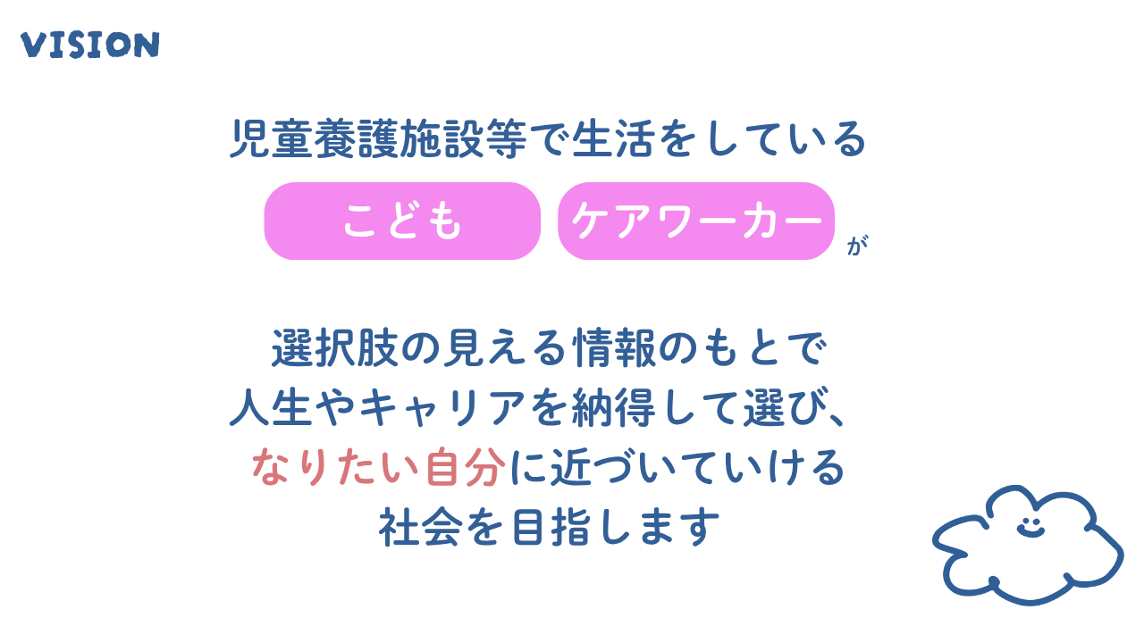 社会的養護の関する情報をわかりやすく届けることで、こどもや若者、ケアワーカーが安心して選択できる土台を整えています。