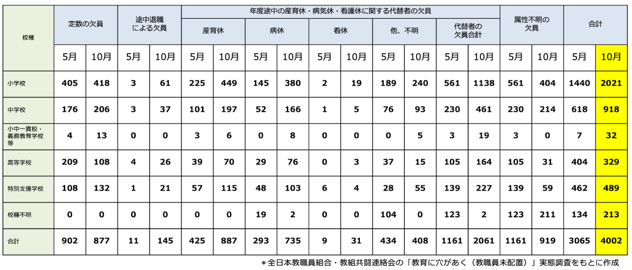 2024年度の教員の欠員数は4,000名を超えた
